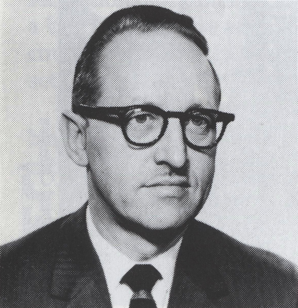 Ancienne photo des années 1950 d'un homme aux cheveux foncés et portant des lunettes