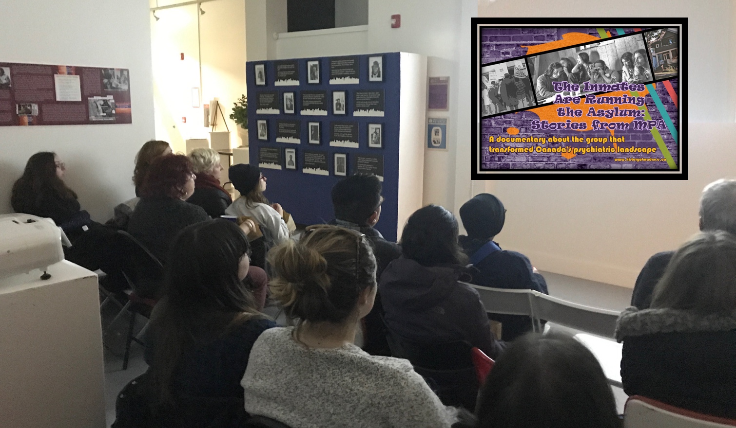 The audience included social work and psychology students from the University of British Columbia and Simon Fraser University, past MPA members or those who remember their family and/or friends who were a part of MPA, as well as people with a general interest in social justice, activism and Canadian history. After the screening, our question period allowed the students to learn more about the process and history of MPA and there was a lively general discussion on mental health among the audience.