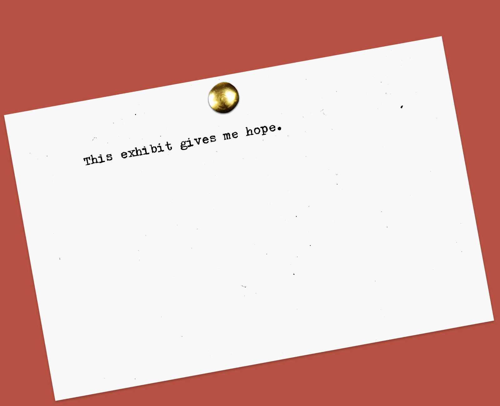Trying to encourage creativity in gathering reactions and responses to the show, we sourced a couple of 1970s typewriters, then put out a handful of felt pens and a stack of blank index cards. We added a 2018 version of a Instamatic camera for a further nod to the period.