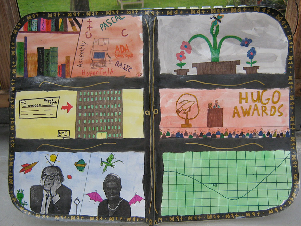 The one that really stood out for me was my older son doing a “value shield” (1994) in school included, among all the other things he aspired to do, showing his interest in SciFi and computers.